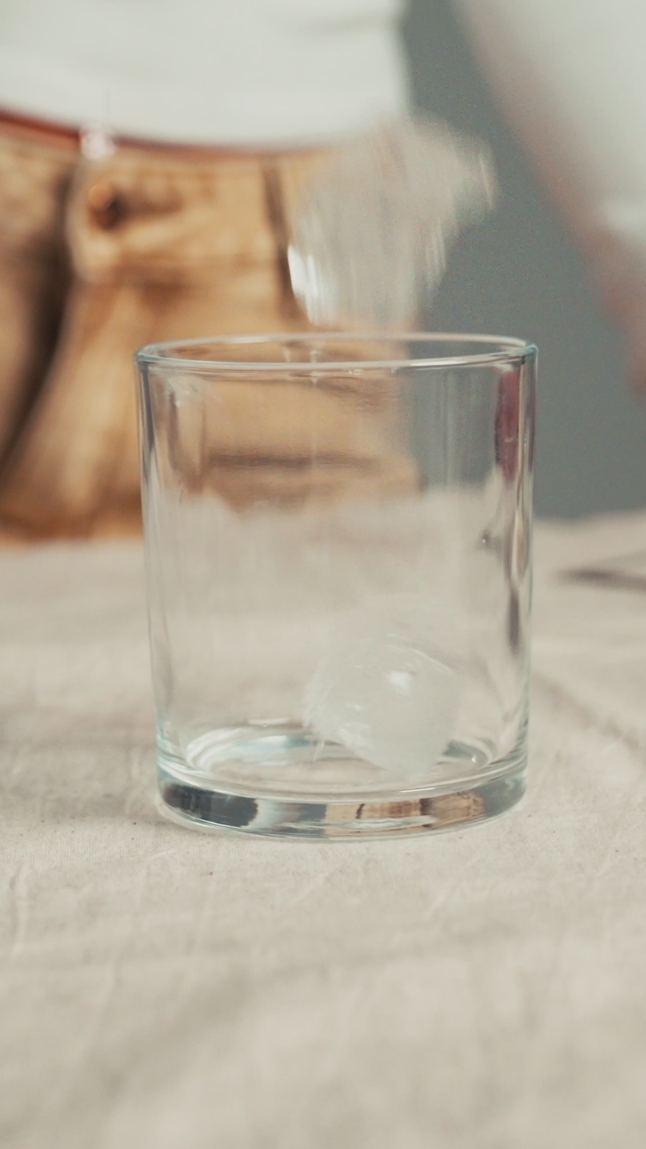 Gewünschte Milch + Eiswürfel ins Glas geben